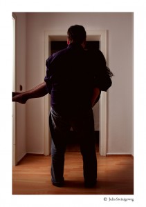 Wenn mein Liebster mich hebt, dann geht er immer tief in die Hocke und hebt mich aus den Beinen heraus. Ich glaube, je tiefer ich liege, desto schwerer fällt es ihm und ich leide sehr, wenn er sich seinen Rücken ein wenig verhebt und Schmerzen hat, daher erinnere ich ihn immer, dass er schön tief aus den Beinen heben soll.